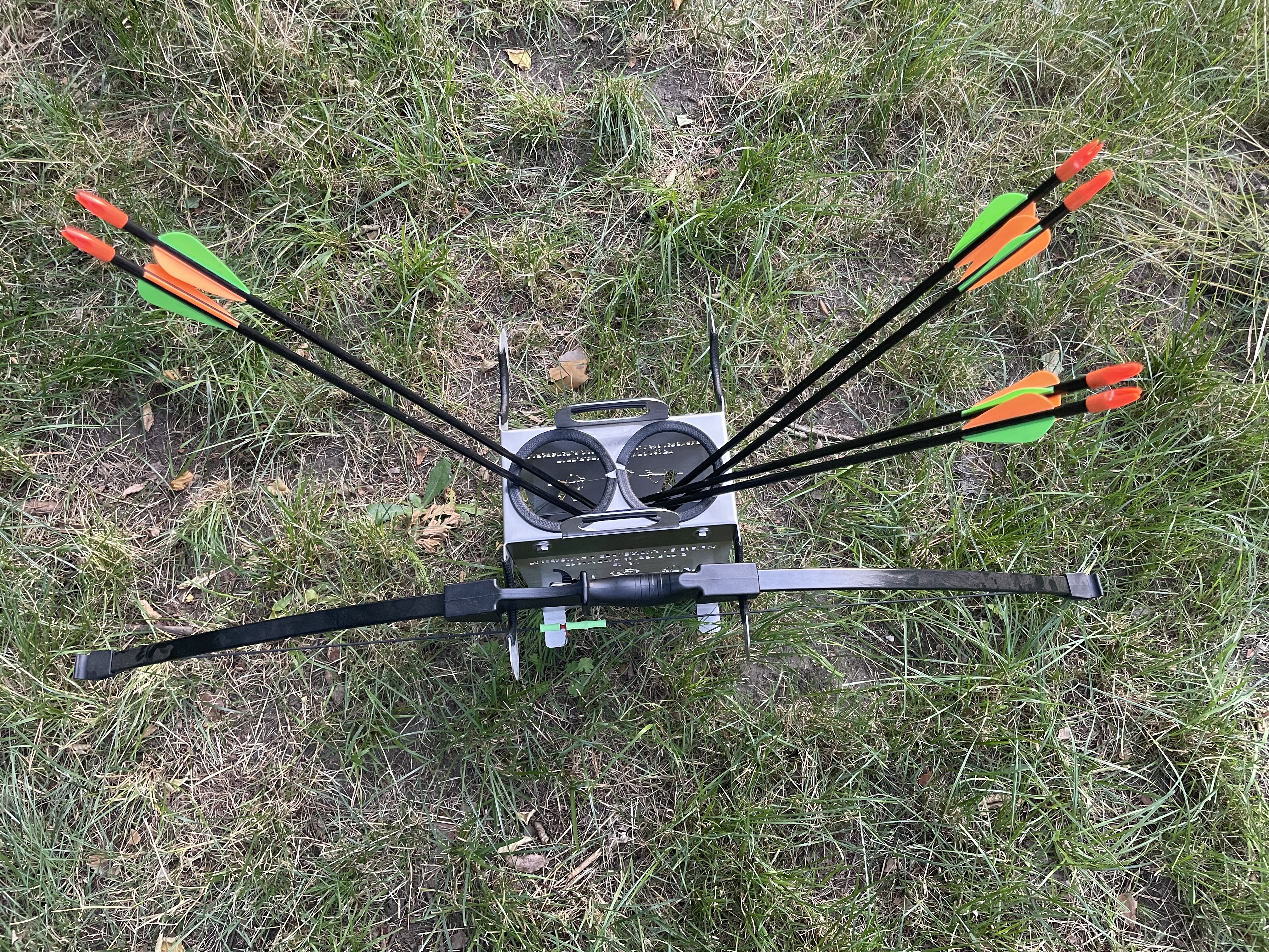 Dieser praktischer Pfeil- und Bogenhalter vereint 2 Funktionen in einem Produkt.